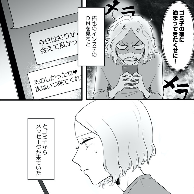 ある日、夫がずっとスマホを手放さないことが気になり、寝ている隙に中身を覗くと、怪しい女とのDMのやりとりを見つけ、夫の不倫が発覚!