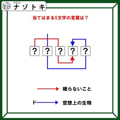 二つの矢印が示す二つの単語から答えになる5文字を考えます。青の矢印から考えるのが分かりやすいかもしれません。