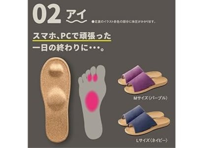 「リカバリースリッパ」は「足の疲労回復」を目的とした室内用の履きもの。歩行時の衝撃を吸収したり、足裏のツボを刺激したり。ソール部分のクッション性や形状に、工夫が詰まっています。