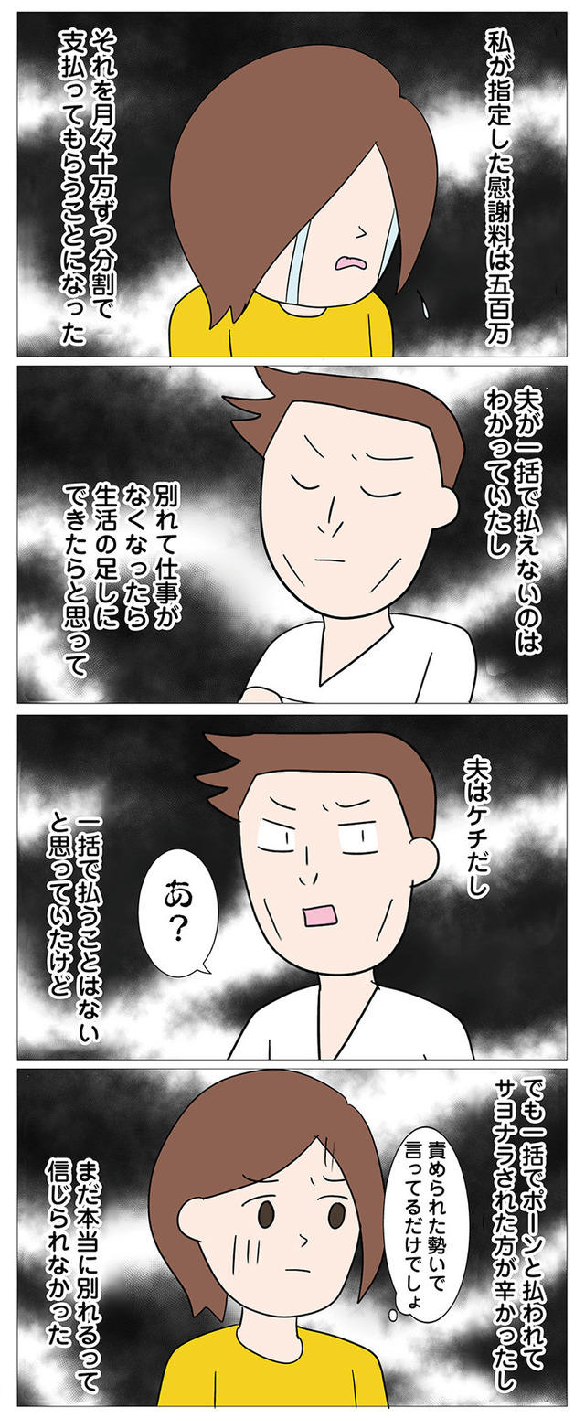 慰謝料500万を分割で…「別れるなんて口だけ」と信じたい妻の揺れる思い【6年たったらさようなら 浮気夫と地雷ストーカー女に復讐します #9】