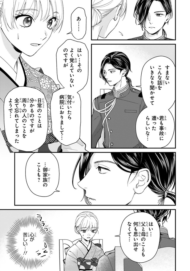 和モダンな世界を舞台にした秘密のロマンス! 家族経営のカフェーが全焼し、窮地に立たされた栗橋光。そんなとき、成金の資産家・剣菱家から、駆け落ちした一人娘・芳子として、華族である黒田家の嫡男・靖親の婚約者のフリをしてほしいと頼まれる。光は家族のために、靖親の婚約者としていっしょに暮らしはじめるが…。「第1回フレックスコミックス漫画原作大賞」金賞を受賞した極上のラブストーリーをお楽しみください!