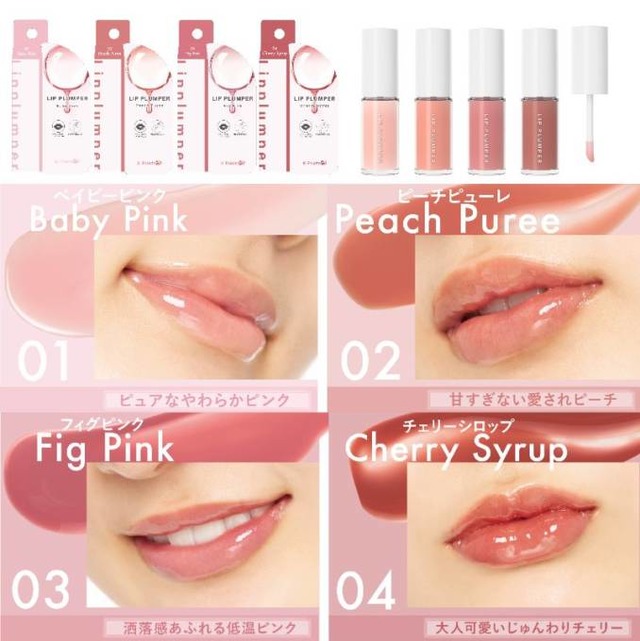 K-Palette CHUNEW リッププランパー全4色(01 ベイビーピンク/02 ピーチピューレ/03 フィグピンク/04 チェリーシロップ)1,650円(税込)