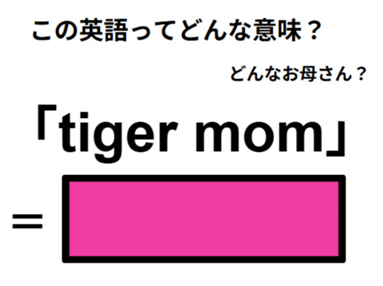 tiger mom 直訳すると「トラ母さん」ですがこれは、たくさん習い事をさせたり、厳しい教育や訓練をさせることで子どもを成功に導こうとする熱心すぎてしまうお母さんのことをさします。アジア系に多いイメージですね。