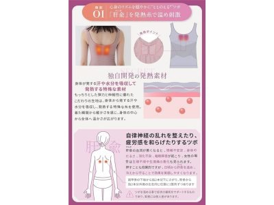 自律神経をととのえたり、疲労感をやわらげたりするのが、背中にあるツボ「肝兪(かんゆ)」。その部分に発熱する特殊な糸を使用し、ツボを温めて刺激。