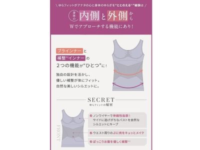 [グラマラスパッツ] ゆらフィット 2024年版 ブラトップ カップ付き 着圧 インナー キャミソール ナイトブラ タンクトップ ルームウエア スタイル補正 ノンワイヤー 着圧インナー ツボ バスト ウエスト 3カラー/2サイズ