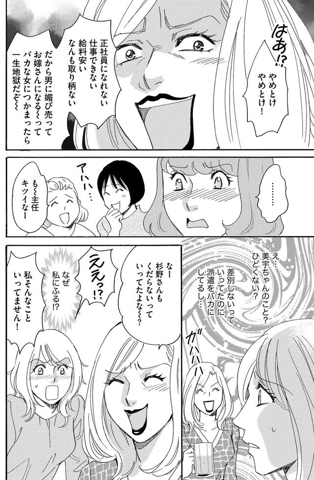 真面目に仕事さえしていれば上手くやっていけると思いきや、どこのハケン先にもズル賢い嫌われ女がボス猿のように君臨し、ハケン社員を手下のように扱う。