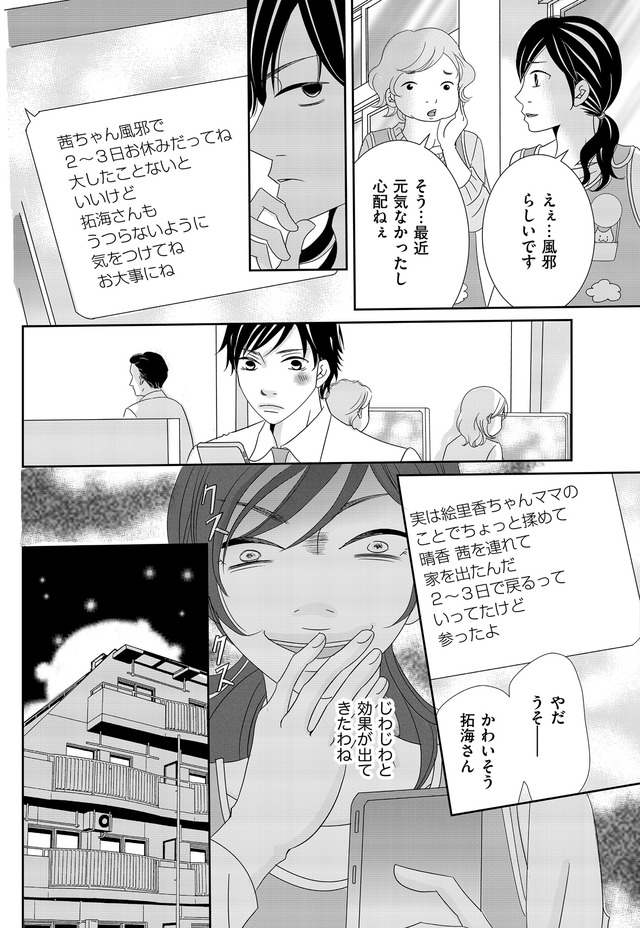 牽制しつつも夫は絶対自分を裏切らないと信じる晴香だったが、意外な人物が夫を略奪しようとしていた──。