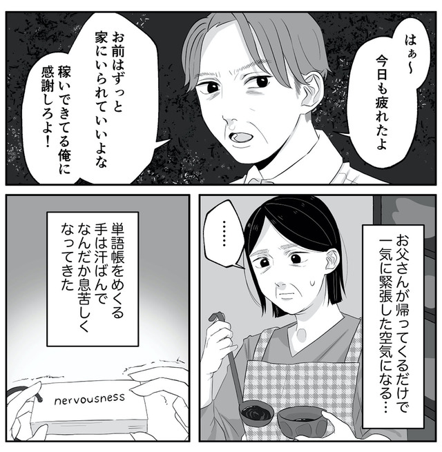 高圧的で文句ばかり言う父、父に逆らえずいつも耐えている母にうんざり…。