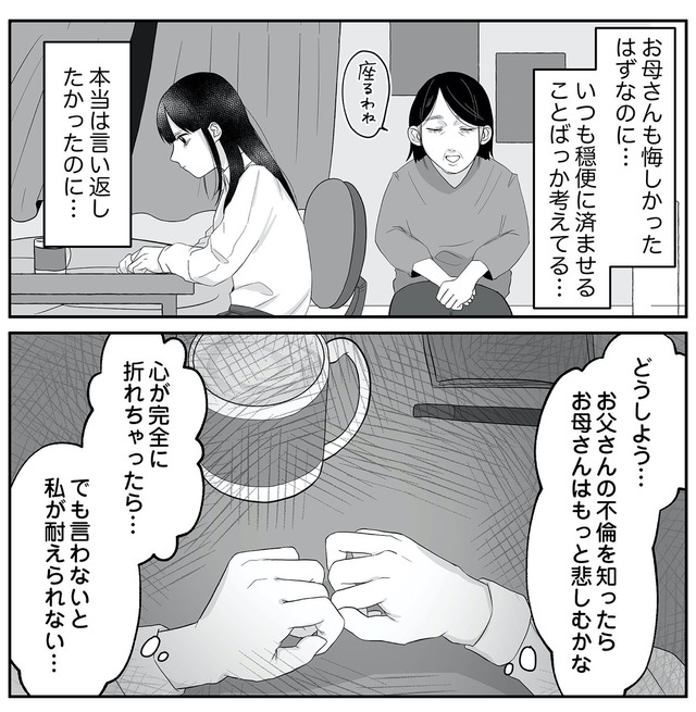 「お父さんたぶん不倫してる…」勇気を出して父の不倫を告げると、母の反応は?【お父さんの不倫、気づいてないとでも思ってる? #9】 | NewsCafe