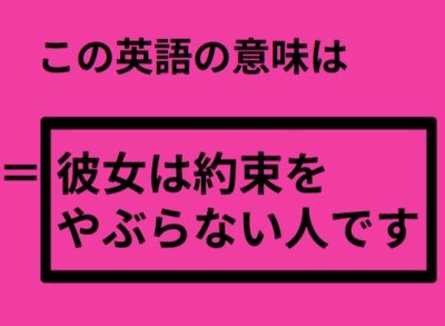 英語で「She is the last person to break a promise.」ってどんな意味?