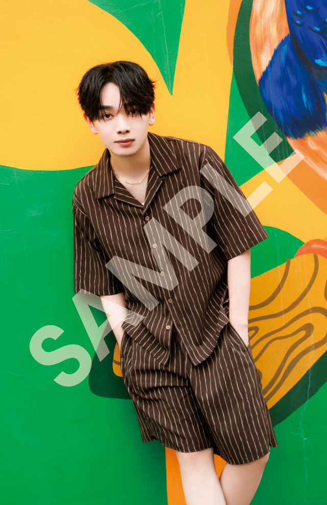 特典カットでは、セットアップ姿の爽やかな空気感や、フライドチキンをほおばる遊び心のあるカットなど、現地でのリラックスした雰囲気が伝わる。また、表紙とリンクしたカットも用意されており、旅の余韻が感じられるオリジナルフォトカードは、ファン必見だ。