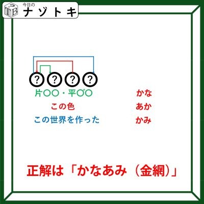 あとは矢印につながるように言葉を当てはめていきましょう。正解は「かなあみ(金網)」でした。