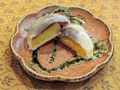 熊本には「いきなり団子」という郷土名物があります。輪切りのさつまいもを小麦粉で包んで蒸した素朴なおやつで、熊本空港でも売られています。