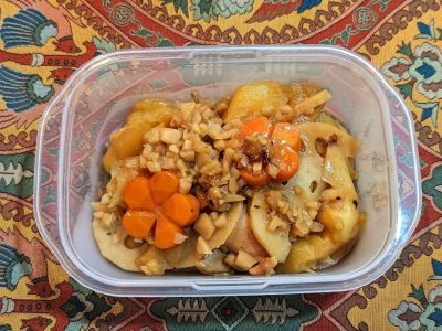 熊本県は蓮根の産地で、同僚から蓮根をもらったことがありました。そのお返しに…ではないのですが、蓮根と鶏肉のりんご煮を作って渡したところ、「りんごをこんな風に使うなんて初めて知った!」と驚かれたことがありました。冬瓜より形は残りますが、煮汁の旨味とりんご本来の甘みと酸味を感じる…なんともいえない味がします。特売のりんごを見つけた時にでも、ちょっと試していただきたいレシピです。