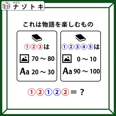 それではそれぞれの書籍の種類が何なのかを考えていきましょう。それを考えるためのポイントはそれぞれの絵と活字の数字の割合です。左は絵が多数をしめています。逆に右はほとんどが活字ですね。これらはなんでしょうか。