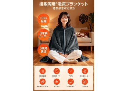 「着る毛布」として肩から羽織ることもできる、使い方いろいろな毛布が89%OFF中! 1時間使用しても0.31円と省エネ設計なのは、さすが2025年型♪