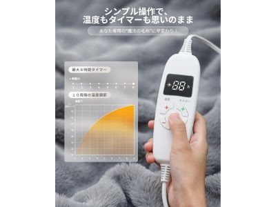 高級ラビットファー調のビッグサイズ。なめらかでふわっふわの手触りに癒されます♪  温度調整は10段階、タイマー設定は8段階も可能!