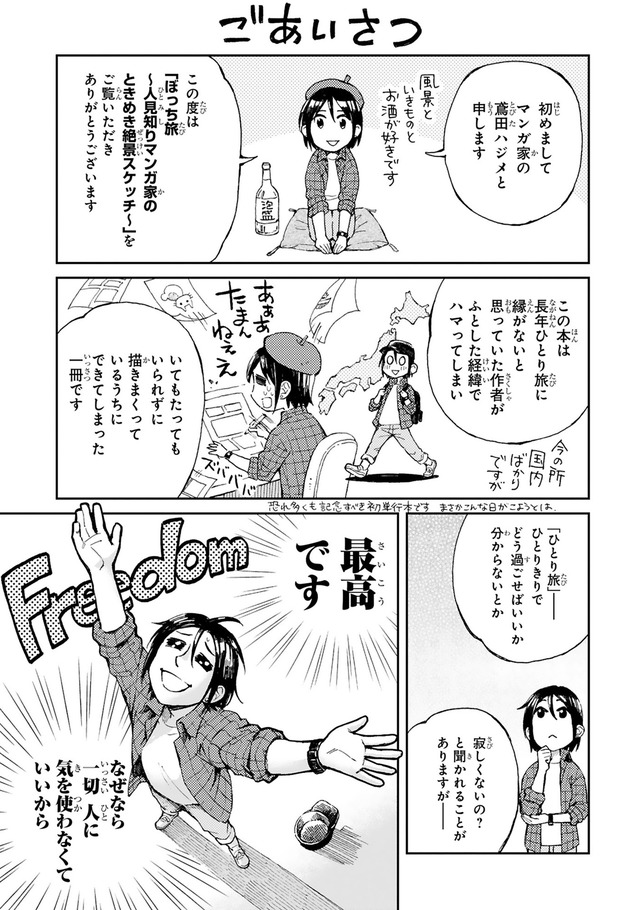 ちょっぴり人見知りのマンガ家・鳶田ハジメが、安らぎとワクワクを求めて日本のはしっこをひとり旅。
