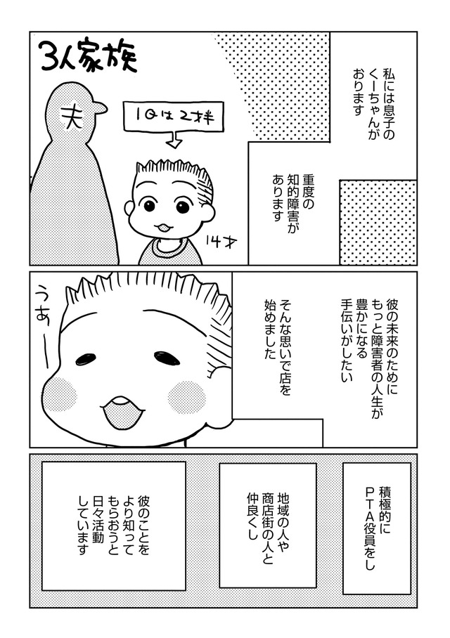 漫画家と雑貨屋を営むにしけ婦人は、夫と重度の知的障害を持つ息子・くーちゃんとの3人家族。