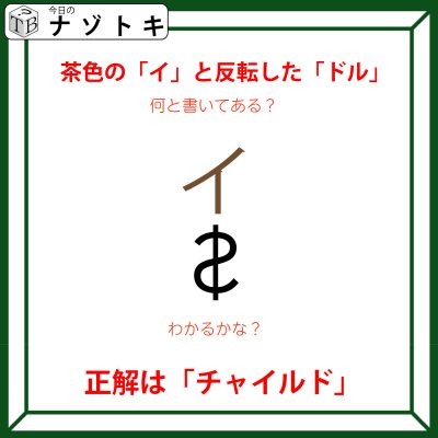 あとはそれぞれをつなげて読んでみましょう。「茶イ(チャイ)」と「ルド」なので正解は「チャイルド」となります。