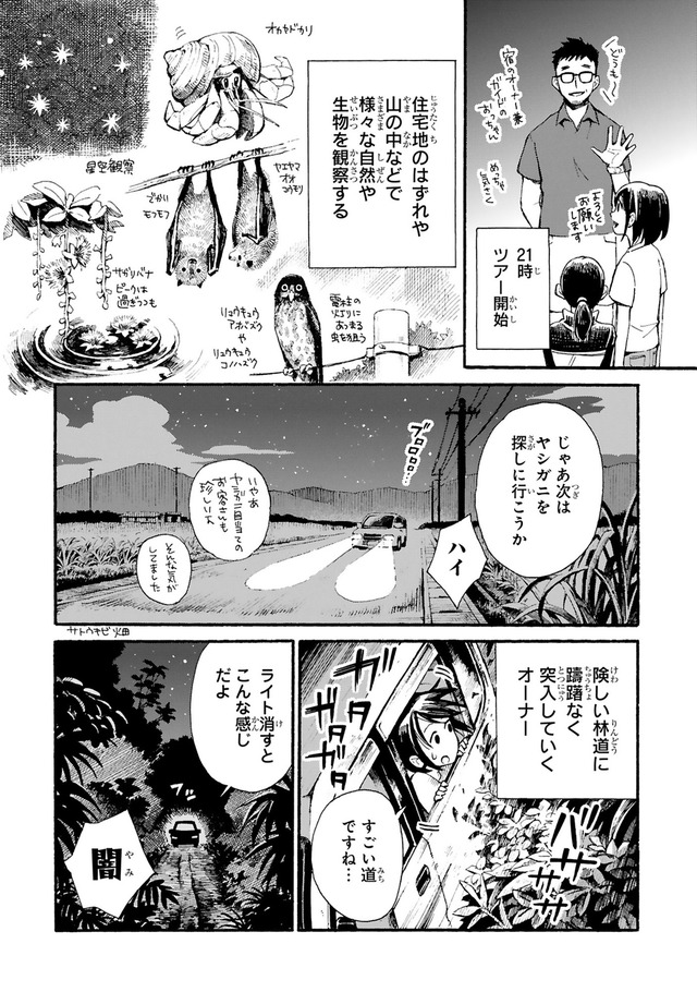 ついに「ヤシガニ」に会えるツアー開始!険しい林道を走り続けて、着いた先は…岩場!?【ぼっち旅 ~人見知りマンガ家のときめき絶景スケッチ~  #3】