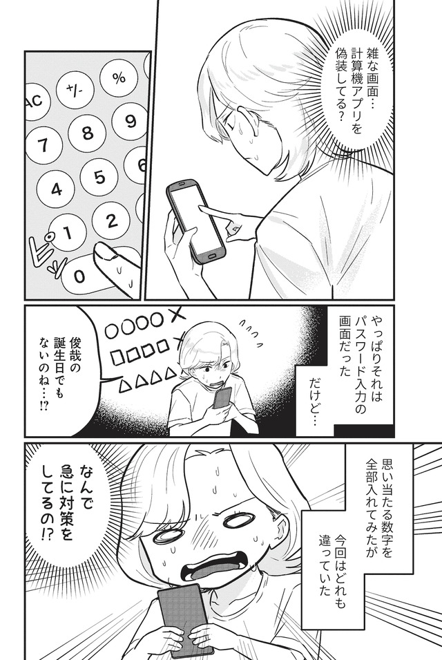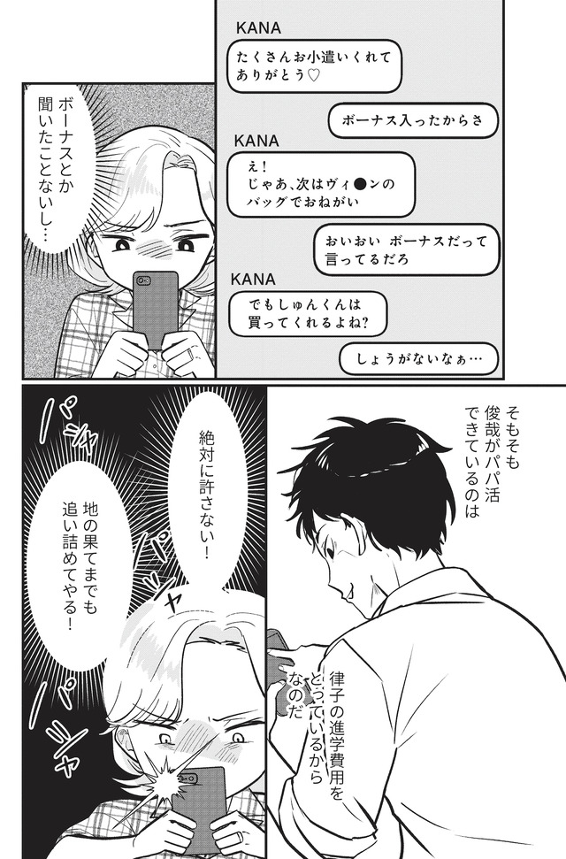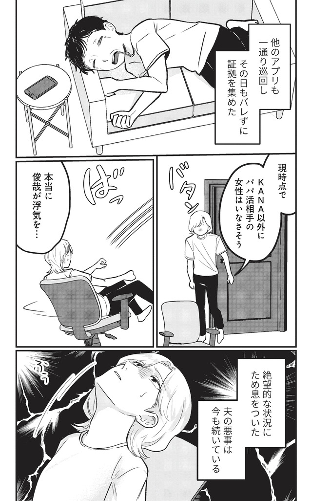 まさか夫が犯人…? ミヤコが夫のスマホを探ると、夫の「パパ活」が判明する。