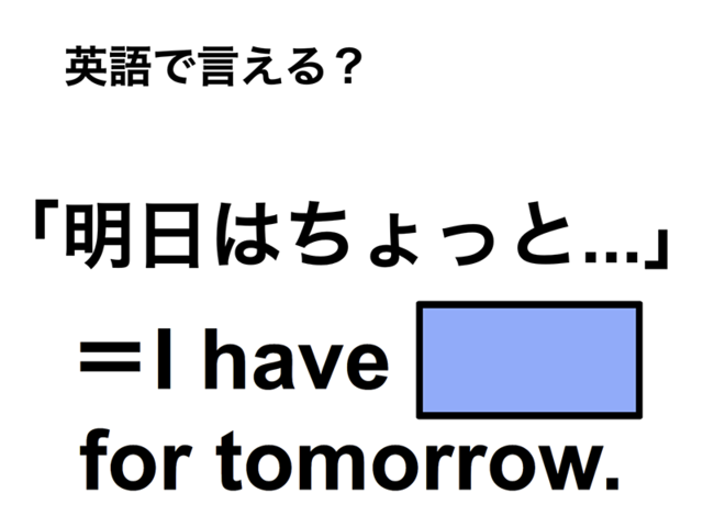「明日は予定がある」という意味で、日常会話や旅行先でもよく使われます。