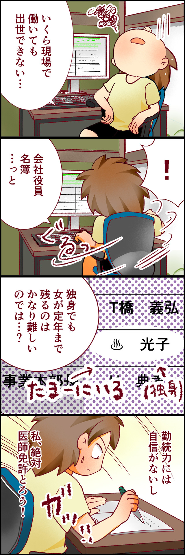 社会人として安定した生活を送っていても、ふと「このままでいいのか」と不安になることはあるもの。この作品の主人公であるアラサー女性「汐見さつき」もそんな一人でした。薬品系企業で穏やかな日々を過ごしていた彼女ですが、医学部を受験することに。