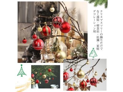 【オーナメント】ツリーに吊るす以外にも、飾りかた無限大! いろいろなデザインのボール詰め合わせセットが40%OFF中♪ ラメが落ちにくいのもイイ!