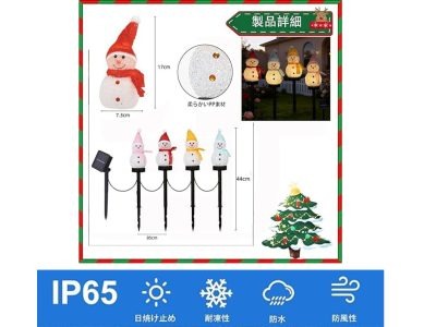 【ソーラーガーデンライト】家計にも環境にも優しい「ソーラー充電式」。 日中に充電し、夜は自動点灯。かわいらしいLED雪だるま4個でこのお値段はコスパいい!
