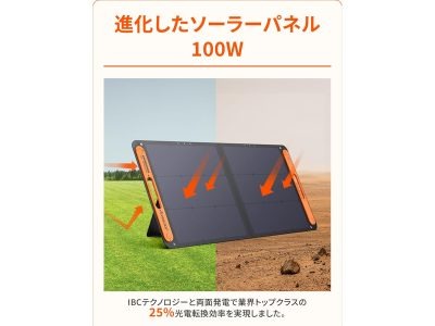 「もう少しお手頃のものが欲しい」という場合は、約5.7kgとコンパクトな512Wh電源。パワフルな100Wソーラーパネルつきだから、発電しながら使える!