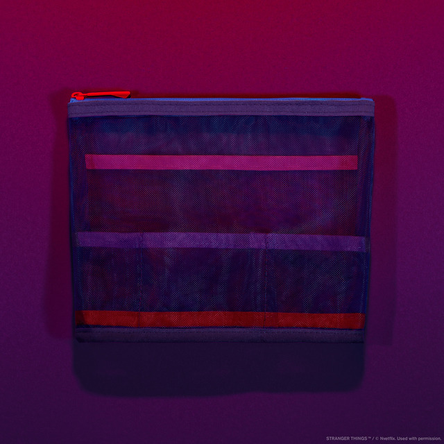 内容:「ストレンジャー・シングス 未知の世界」をモチーフに配色したメッシュポーチ。人気のメッシュポーチで初のコラボアイテム。