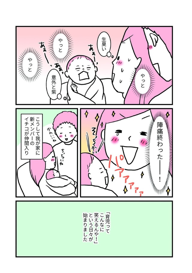 陣痛に耐え抜いてついに出産…誕生は大変だったけど、楽しい育児の始まり!?【育児ってこんなに笑えるんや! #2】