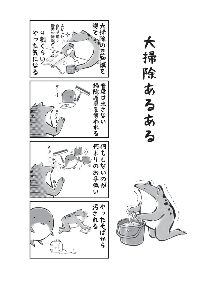 インスタで大人気のユウコトリトリが描く『カエル母さん』は、カエルの長男とおたまじゃくしの次男を中心に育児や家事の“あるある”を鳥獣戯画風にコミカルに描いた四コマ集。