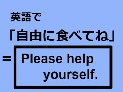 自由に食べてね」だけでなく、チラシや古本など「ご自由にお持ちください」と言いたいときも、この Please help yourself. が使えます。貼り紙としてもそのまま書くことができます。