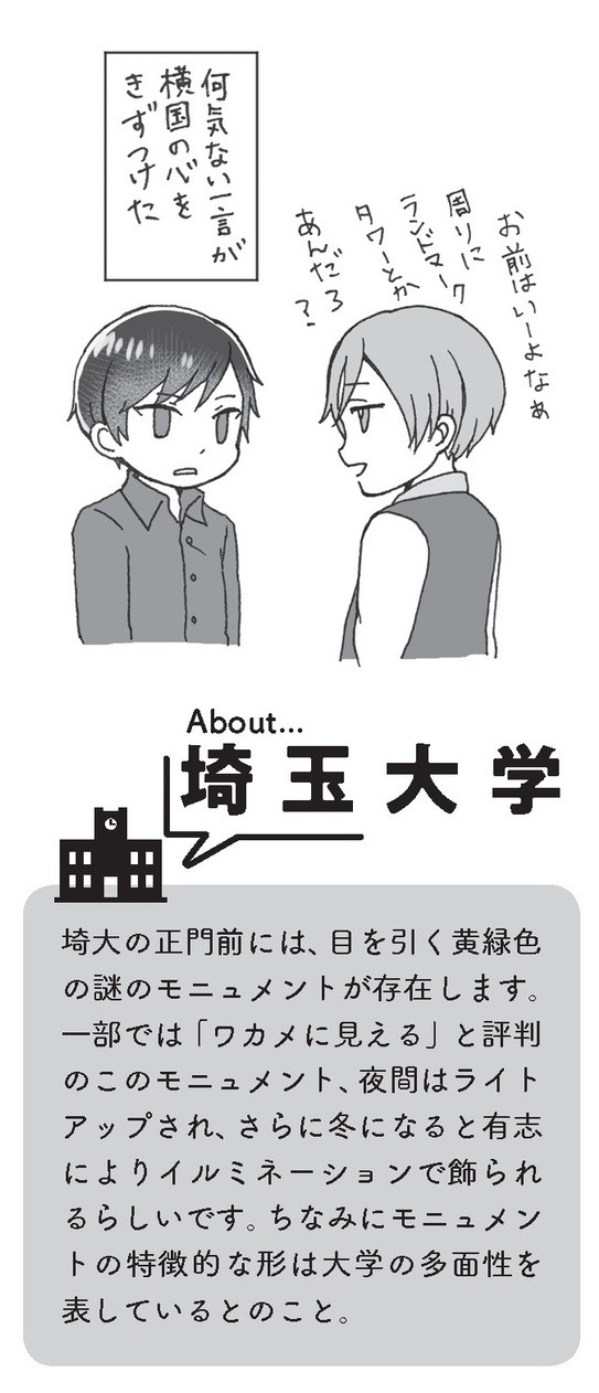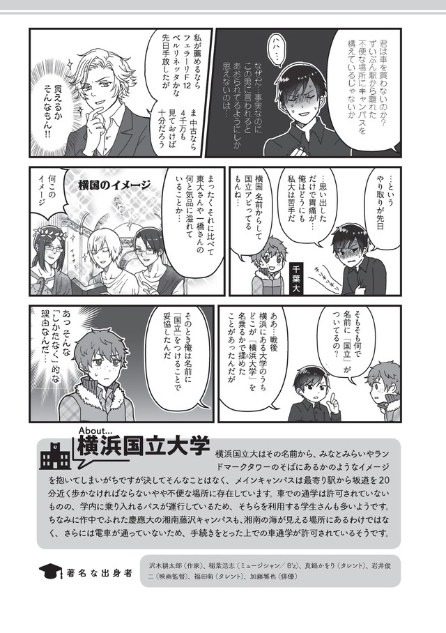 どの大学がどんな“クセ”を持つ? 首都圏・関西の国公立から私立、旧帝・理系・女子大・芸術大まで計70校をユニークに擬人化。ブログで話題を呼んだ連作が大幅加筆&描き下ろし多数で待望の書籍化。志望校や出身校の“あるある”を探してみよう!学風や学部、学食、キャンパス事情まで全方位の“あるある”ネタ満載。受験生も卒業生も楽しめる読み応えの一冊。