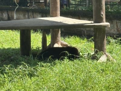 8日目はレンタカーでコタキナバルにある動物園に行きました。熱帯雨林で野生のオラウータンを見てから動物園でオラウータンを見ると、違和感を覚えました。野生のオラウータンは移動の際に地上に降りてくることがあっても、危険なのでサッと木に登るそうです。でも、動物園のオラウータンは日陰の地面でじっと座っています。動物園の囲いの中には木がないのです。高い木に登ってしまうとお客さんから見えなくなってしまうからだと思います。ロープの遊具は置いてありますが、葉っぱがなくて暑いので、登らないのだと思います。