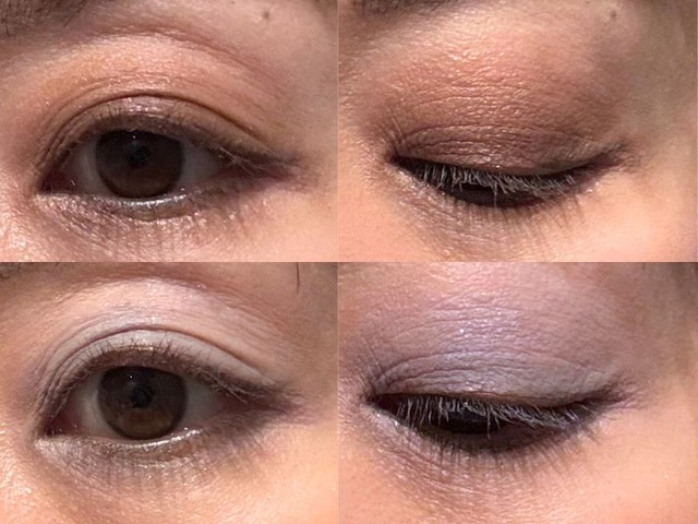 (1)目の周りのくすみと一体化するようなダークカラーのアイシャドウ