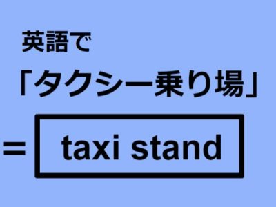 また、 taxi のことを cab(キャブ)とも言いますので cab stand や cab rank と言うことも。