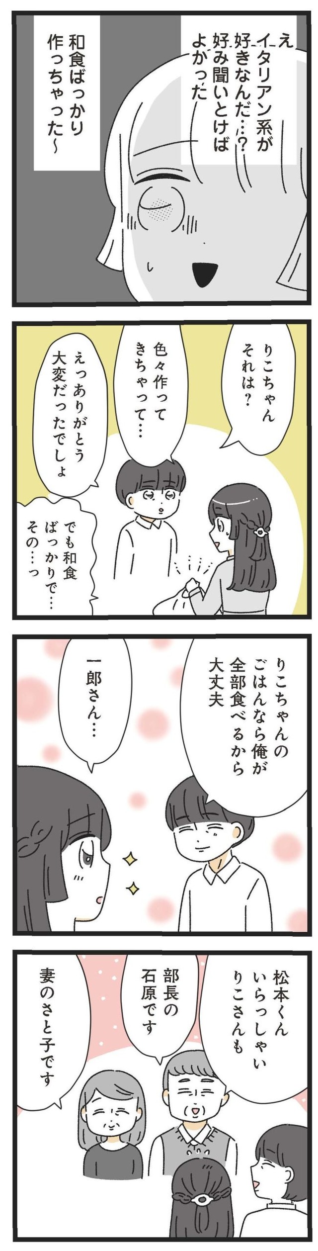 シングルマザーの家庭で育ったりこは、父親のような包容力を持つ一郎に惹かれ、20歳の年の差を乗り越えて結婚する。