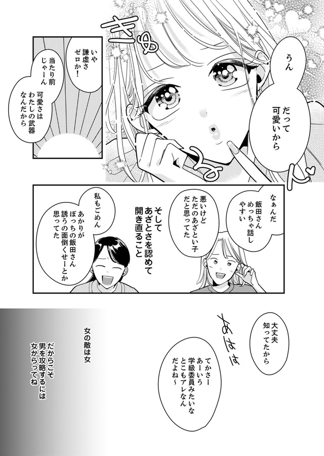 自身の持つ「かわいさ」と「モテ」絶対的に自信を持つ主人公の飯田美和。彼女は新卒で入社した会社でもそのあざといテクニックを駆使し、楽な社会人生活を送ろうとしている。しかし、本来は社会の厳しさを痛感し壁に直面することで成長するはずなのが社会人。彼女の成長の機会を奪い、過度に増長させてしまったある出来事によって、事態は思わぬ方向へ。「あざとさ」と「マウント願望」を全開にしたまま社会人1年目を突き進む飯田美和と仕事をしない彼女に頭を抱える周囲の困惑とは……?