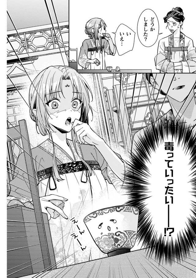 しかし火事が起きて店は消失。食堂の常連で後宮に仕える美しい青年、陽伊鞘に救われるが、彼の頼みで後宮付きの薬膳医になることに。