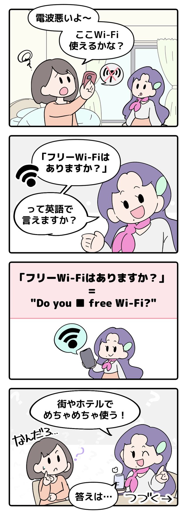 「英語嫌いな日本人をなくしたい!」海外生活や添乗員経験、そしてバイリンガル子育て中の英会話講師・Mrs.服部が、身近な英語表現を漫画&クイズ形式でお届け! 「間違ったら恥ずかしい」じゃなく「伝わればOK」。使えるフレーズをマンガで学びましょう!