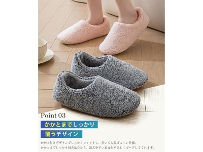 かかとまですっぽり包み込む、ふわもこスリッパ。内側はふわふわの裏起毛で、寒さからしっかりガード!