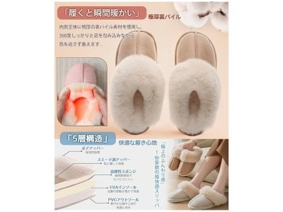 保温性は普通のスリッパの3倍以上!? 裏地のあったか起毛で熱気を閉じ込めます。疲れにくい厚底ソールを採用した、Amazonで今一番売れているレディース「ルームシューズ」!