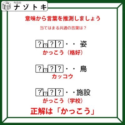 今日は共通した言葉を考えるナゾトキです。