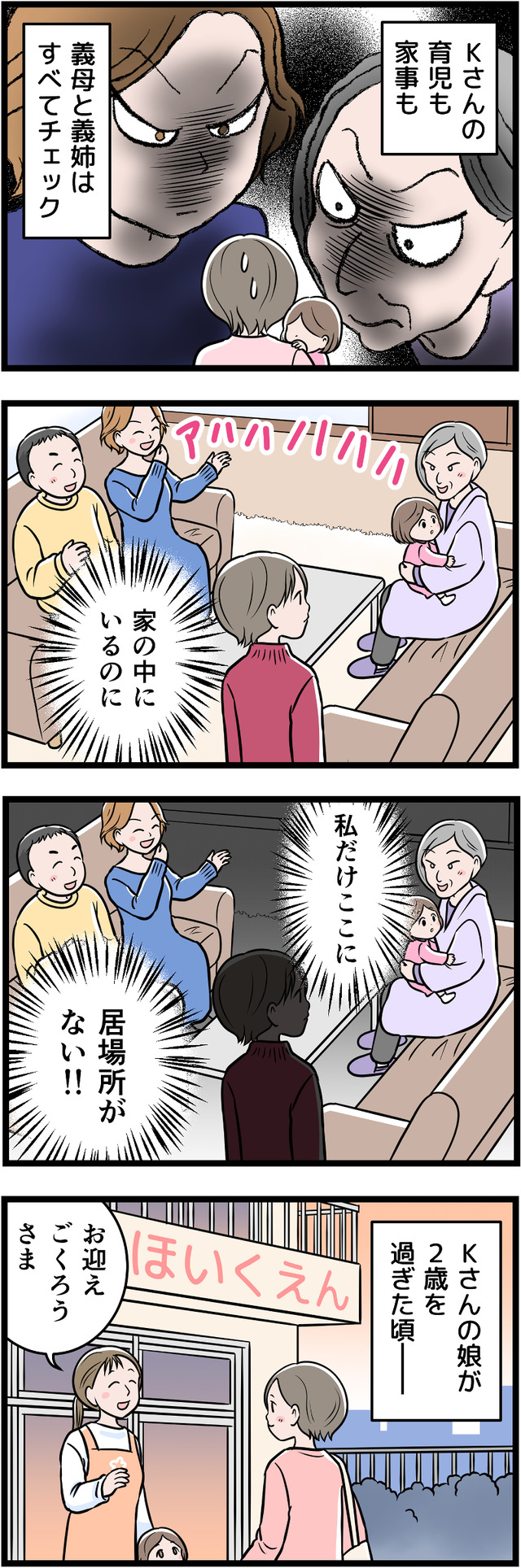身の置き所がない義実家で、懸命に子育てをしていたKさん。ある日、保育園にお迎えに行ったときに、保育士さんから呼び止められます。