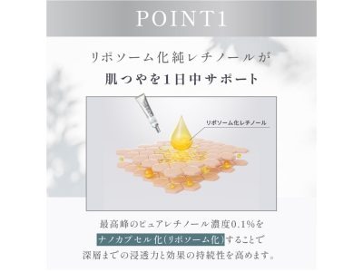 Amazonの「アイクリーム」部門で今1位の人気商品。特殊製法でリポソーム化したレチノールを配合し、高い浸透力を実現。業界最多水準の6種のレチノールを配合!