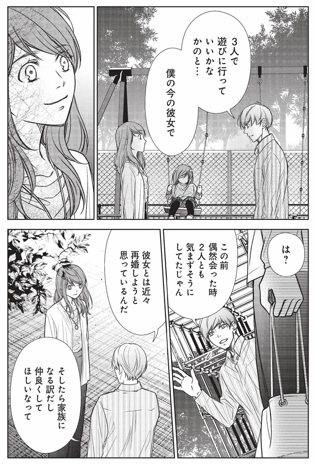 一方、不倫をシタ結果、離婚となった宗一の元妻「実奈子」は、元夫への想いを断ち切れず、娘を口実に、少しずつ距離を縮めていく――。