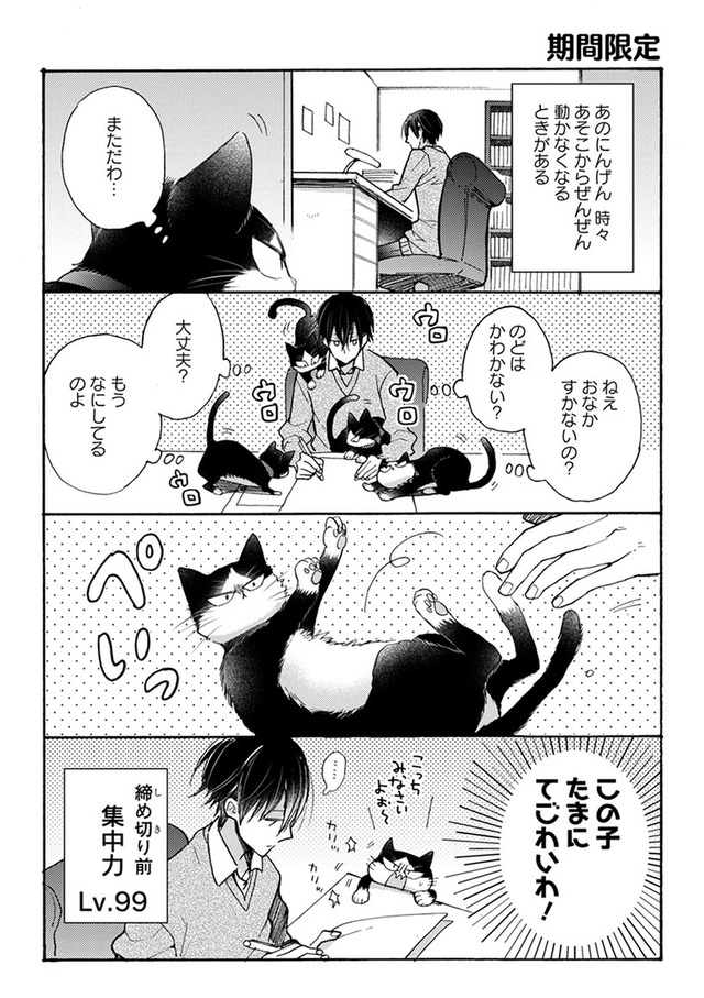 そんな彼のもとに現れたのは、自由気ままに過ごす一匹の子猫。不可解で愛らしい行動に振り回されつつも、小説のネタが次々と芽生え、閉じた日常に少しずつ変化が訪れる。